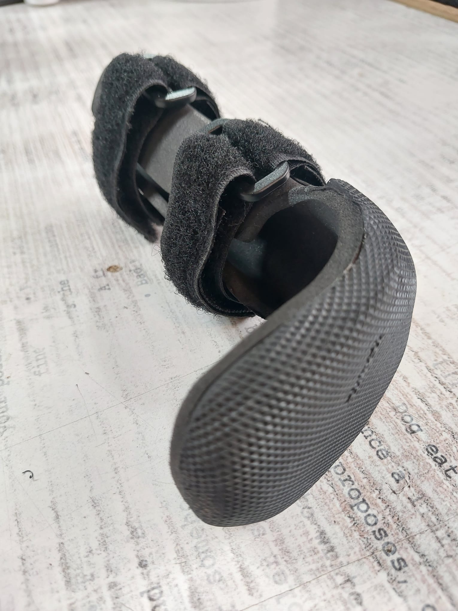 – Fermeture par velcros*, assurant une très bonne stabilité et une très bonne tenue (* le nombre de velcro dépend de la taille de l’attelle).